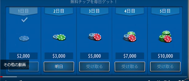 初期チップが5,000ドルもあるし、デイリーボーナスもダウンロード当初はしばらくある(5日間、合計27,000ドル)ので、思い切った賭けをしない限り無料で十分遊べます。