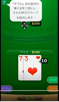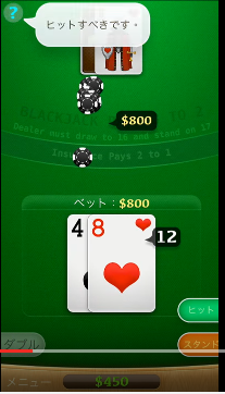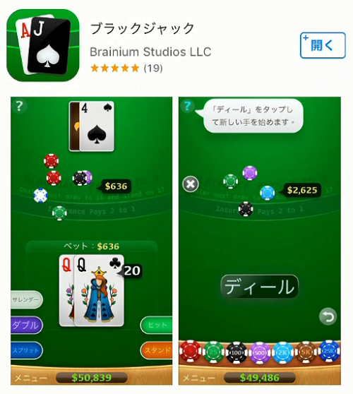なので、不慣れな初心者でも全く抵抗なく遊べるブラックジャックアプリになっています。