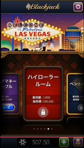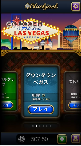 ↑のようなベット幅があります。初期持ち金が500ドルなのでストリップテーブルぐらいから課金が必要かな?といった作りになっています。