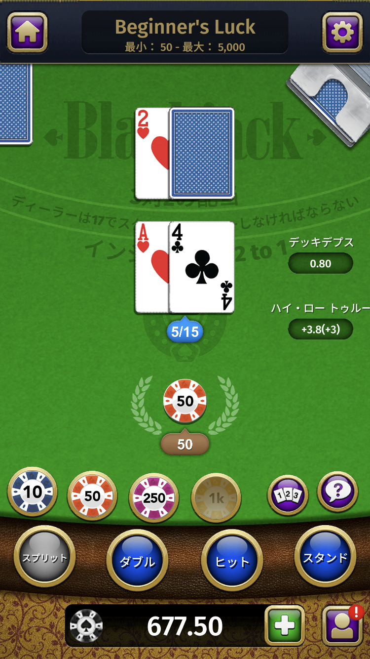 ベーシックストラテジー補助機能も良いですが、カードカウンティング補助機能が本当に良いです(^^