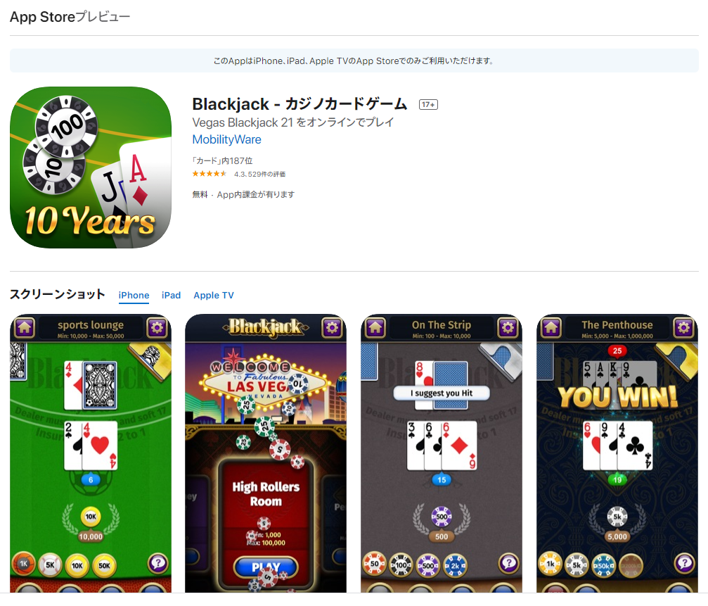 「Blackjack - カジノカードゲーム」の詳細ページはこちら