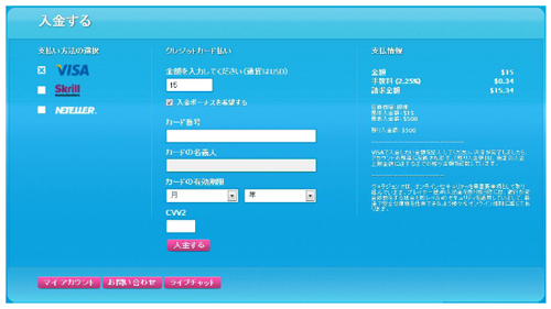 - ご希望の入金額を入力してください。( 最低入金額は$15です )