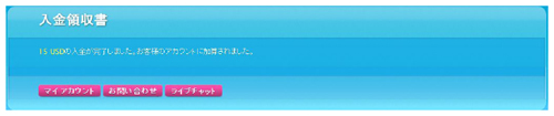入金完了画面が出ると、クレジットカードの入金は完了です。